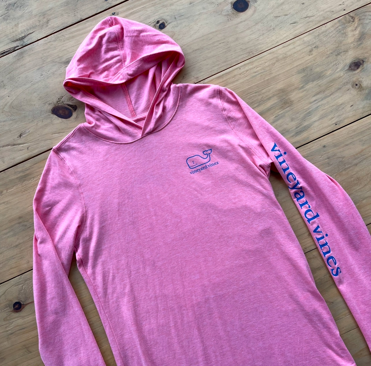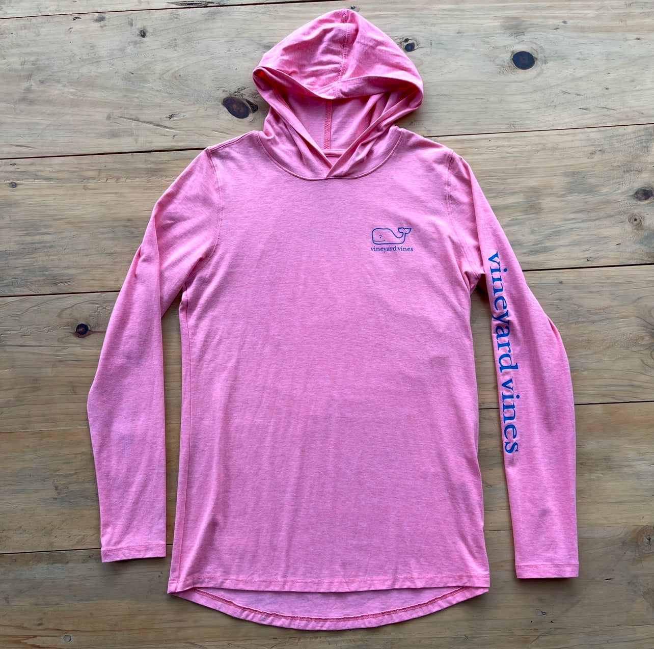 Coral, tela fresca transpirable, estampada al frente y en espalda con capucha. Nueva