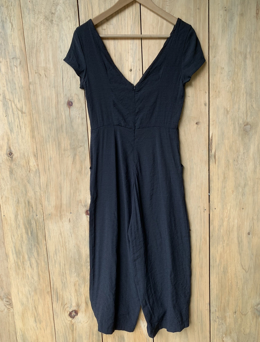 Negro tela fresca y elegante con bolsas y botones. Medidas: Espalda 37, Cintura 33, Largo 120.