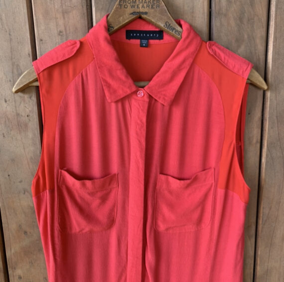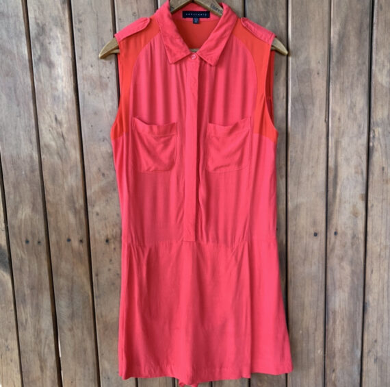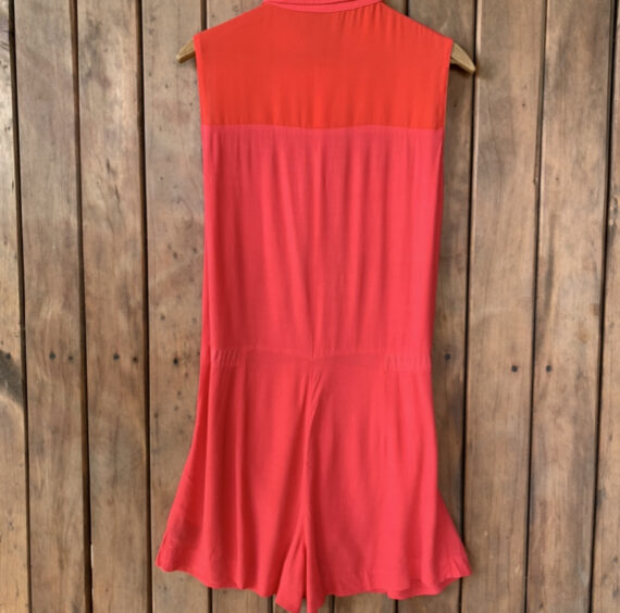 Tela cómoda y fresca, color rojo, short y bolsas. Medidas: Espalda 36, Ancho 47, Largo 85.