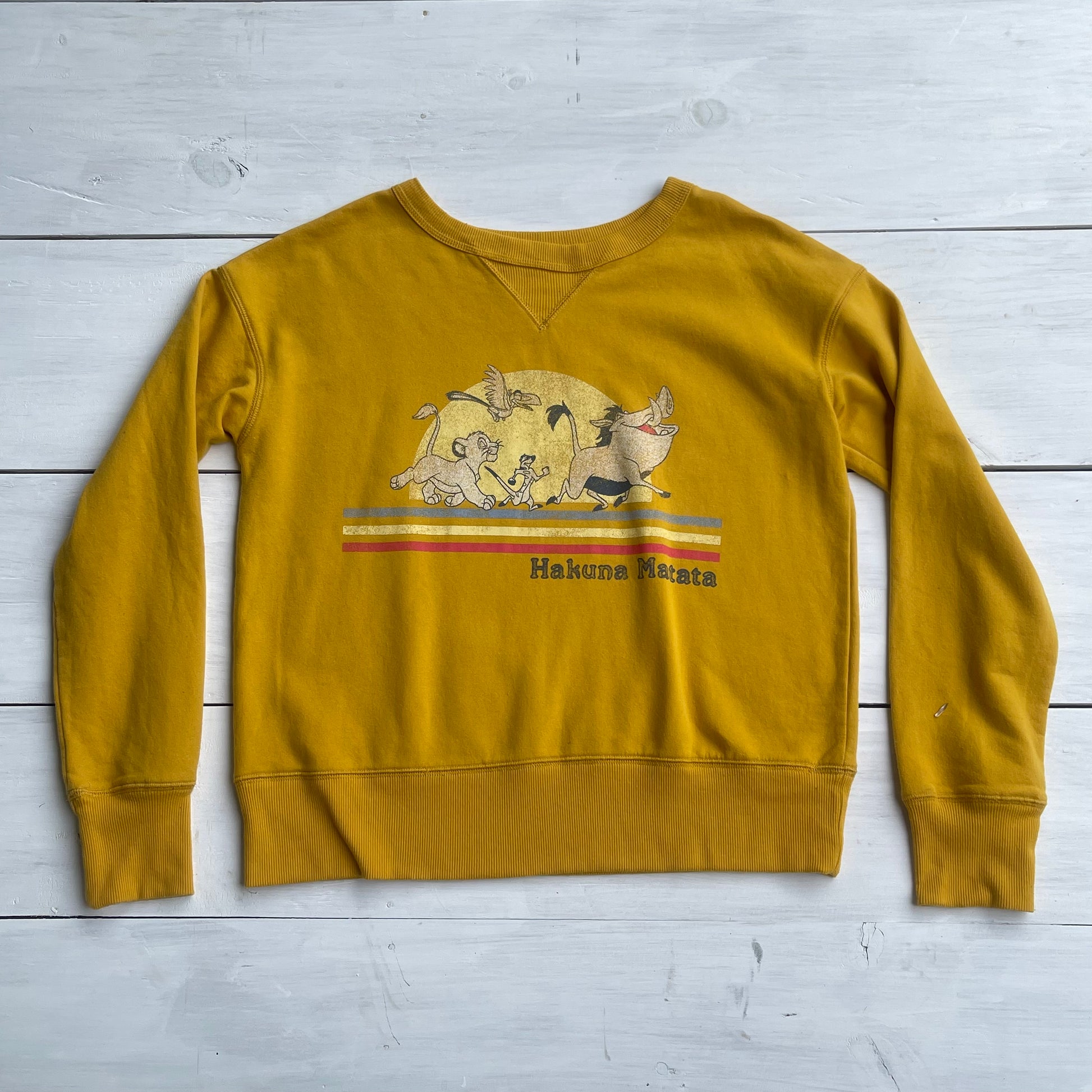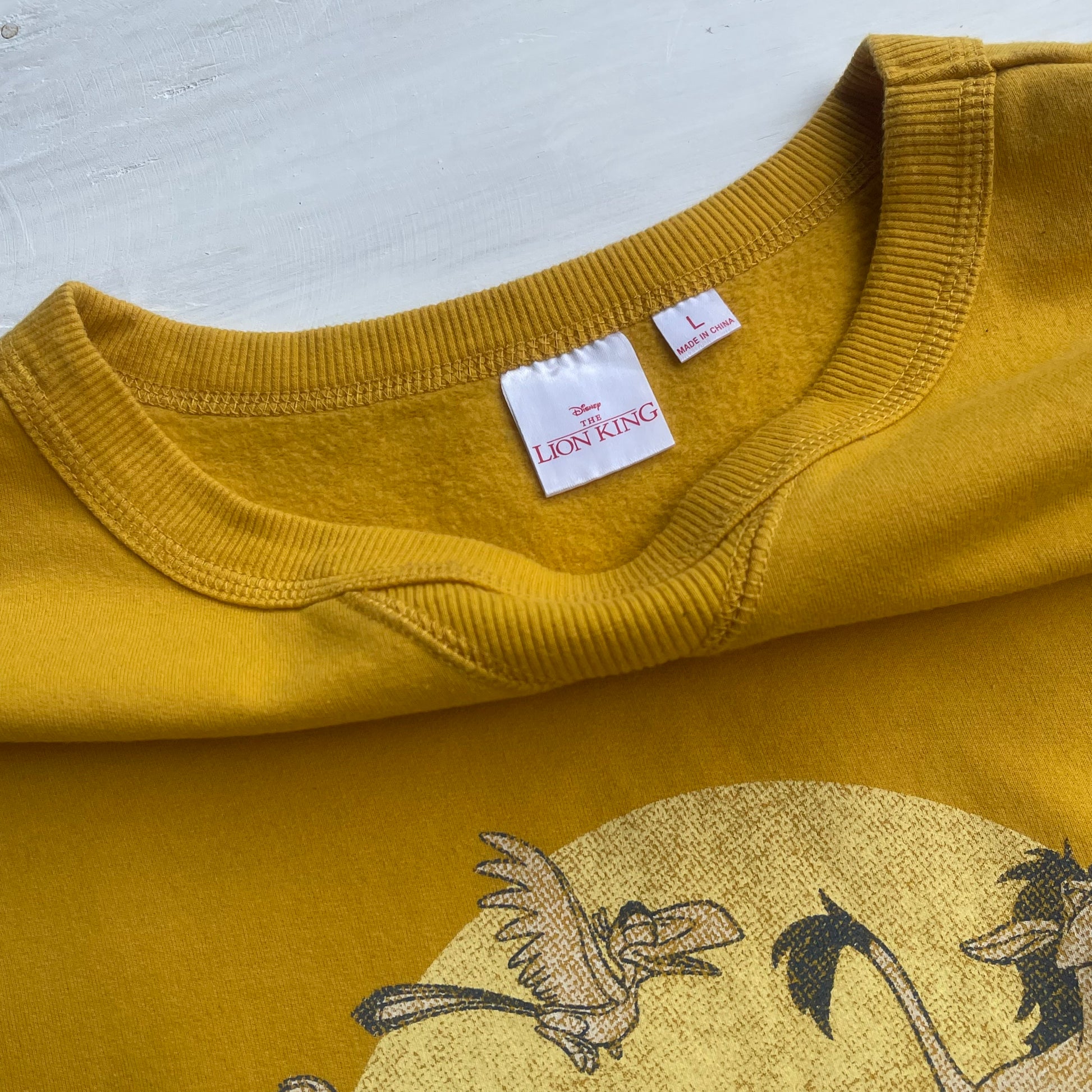 Suéter de tela muy suavecita y abrigadora con diseño de El Rey León. Puede quedar también en talla M. De segunda mano en perfecto estado.