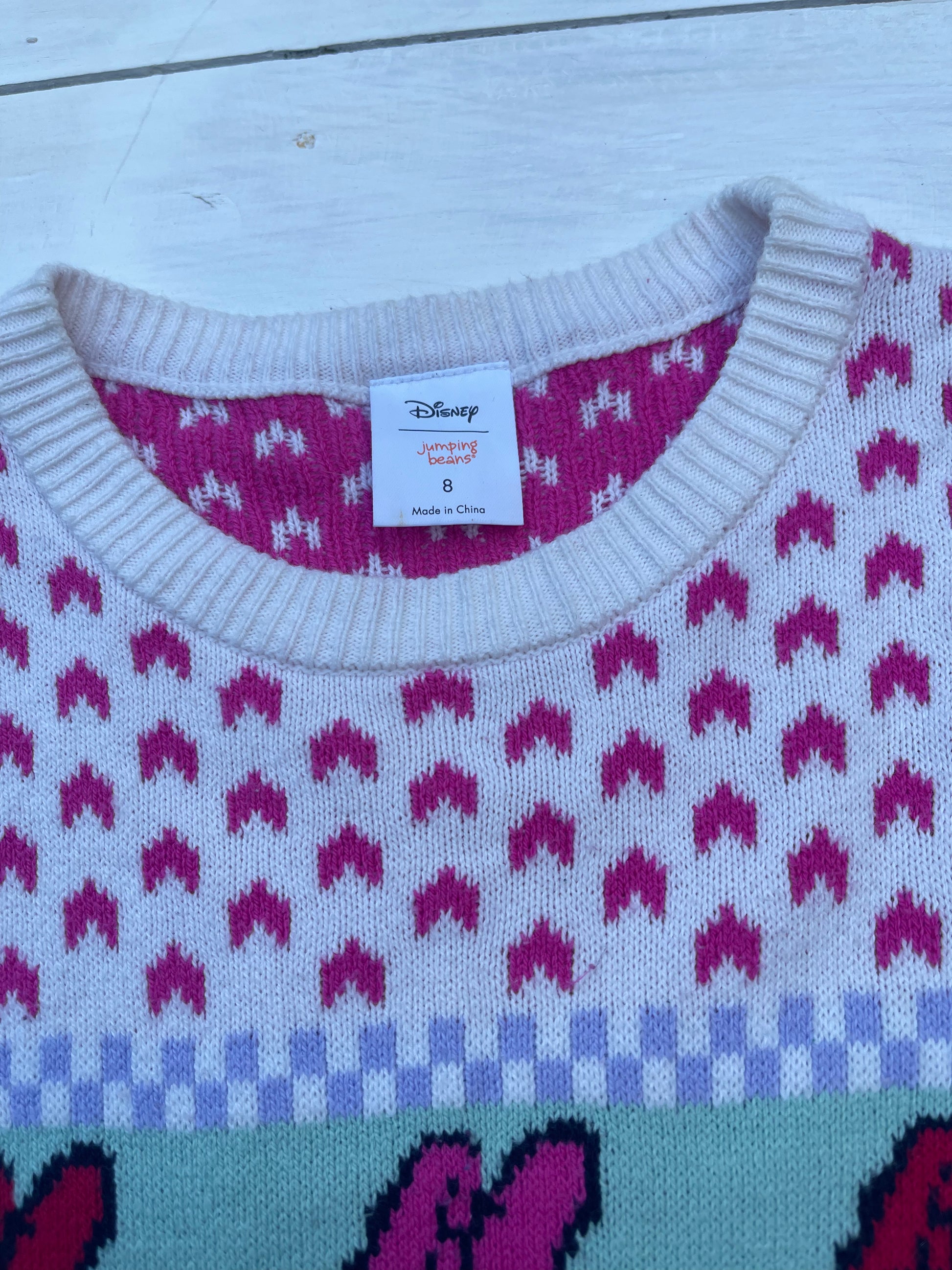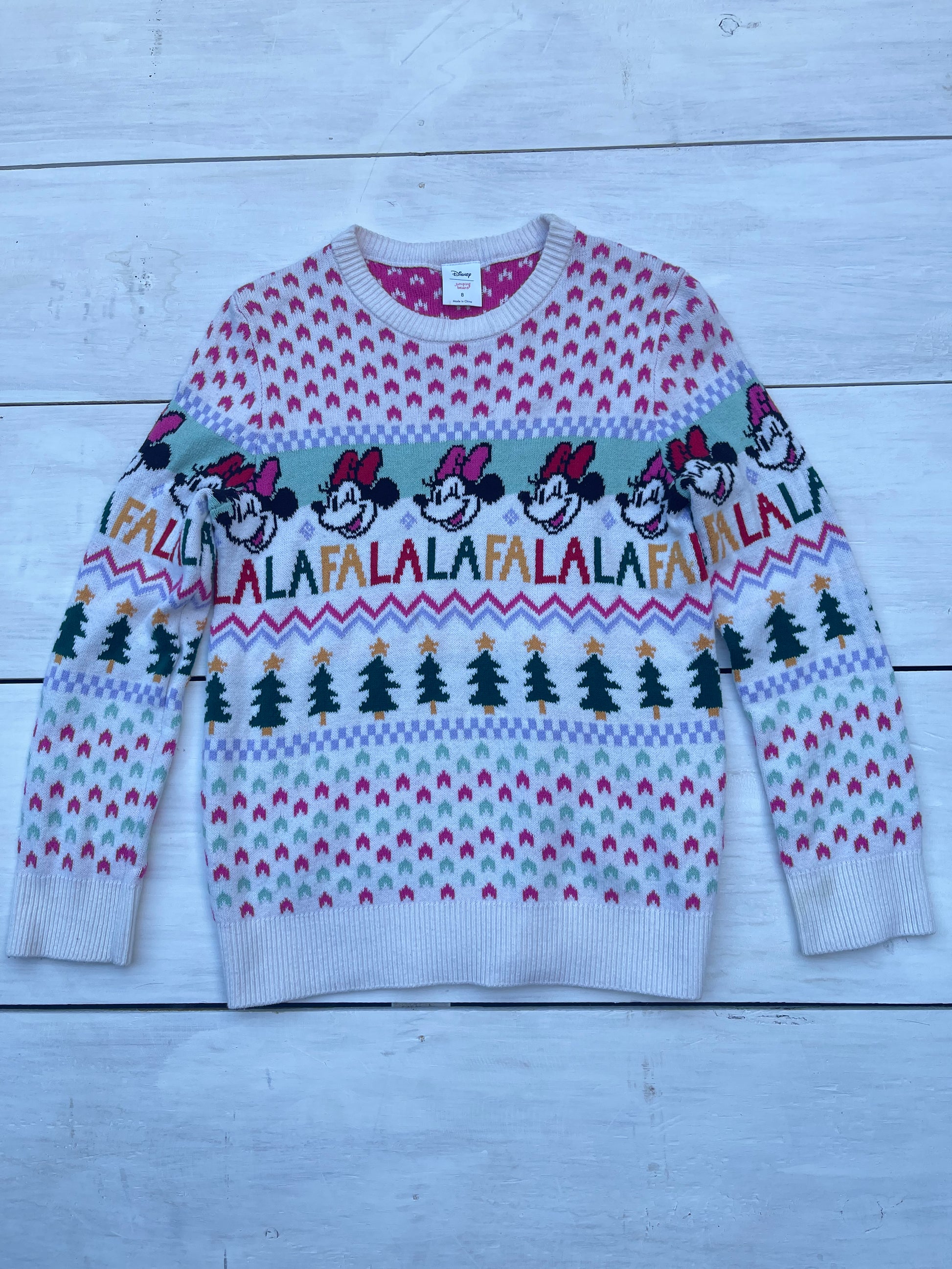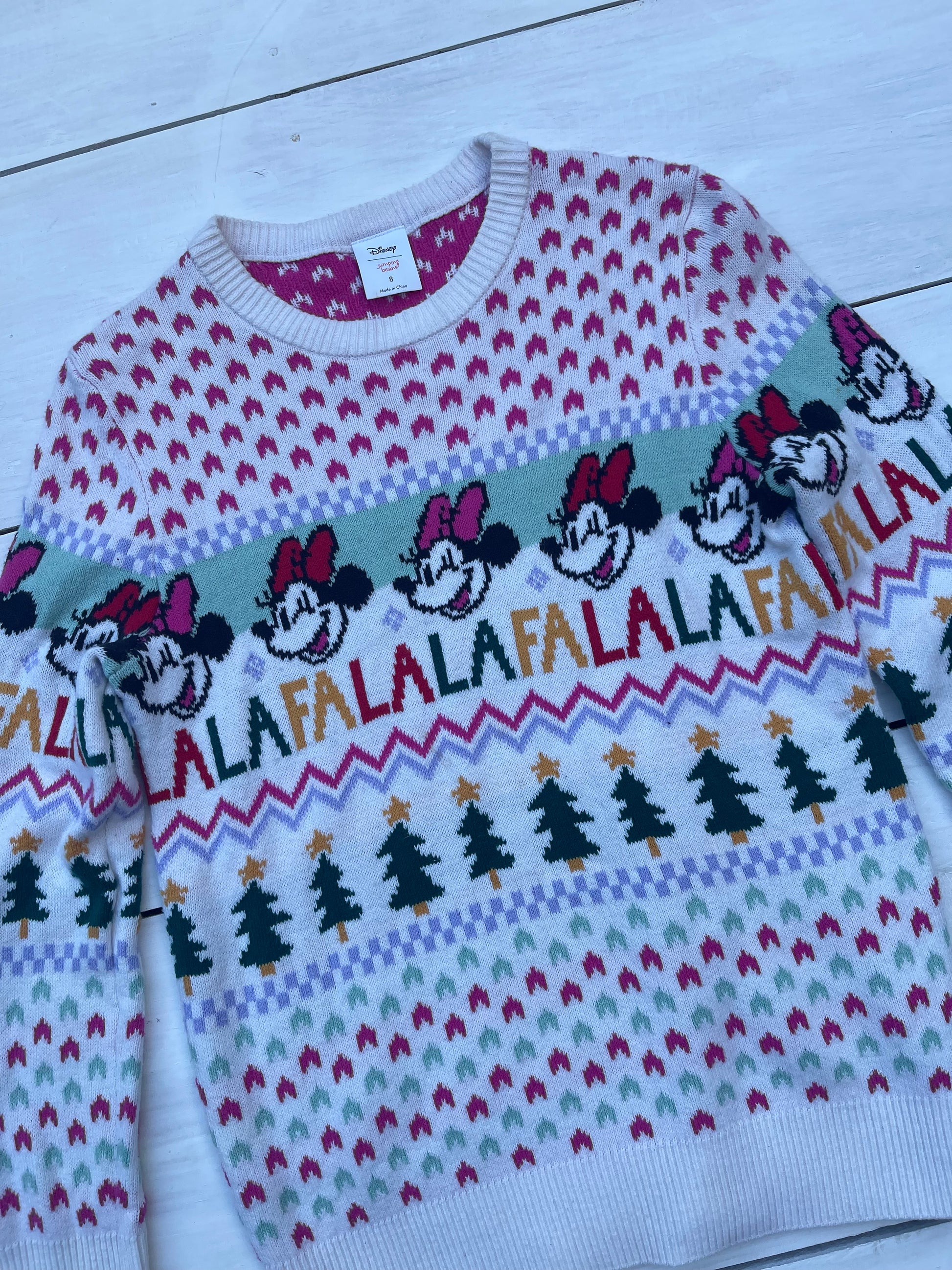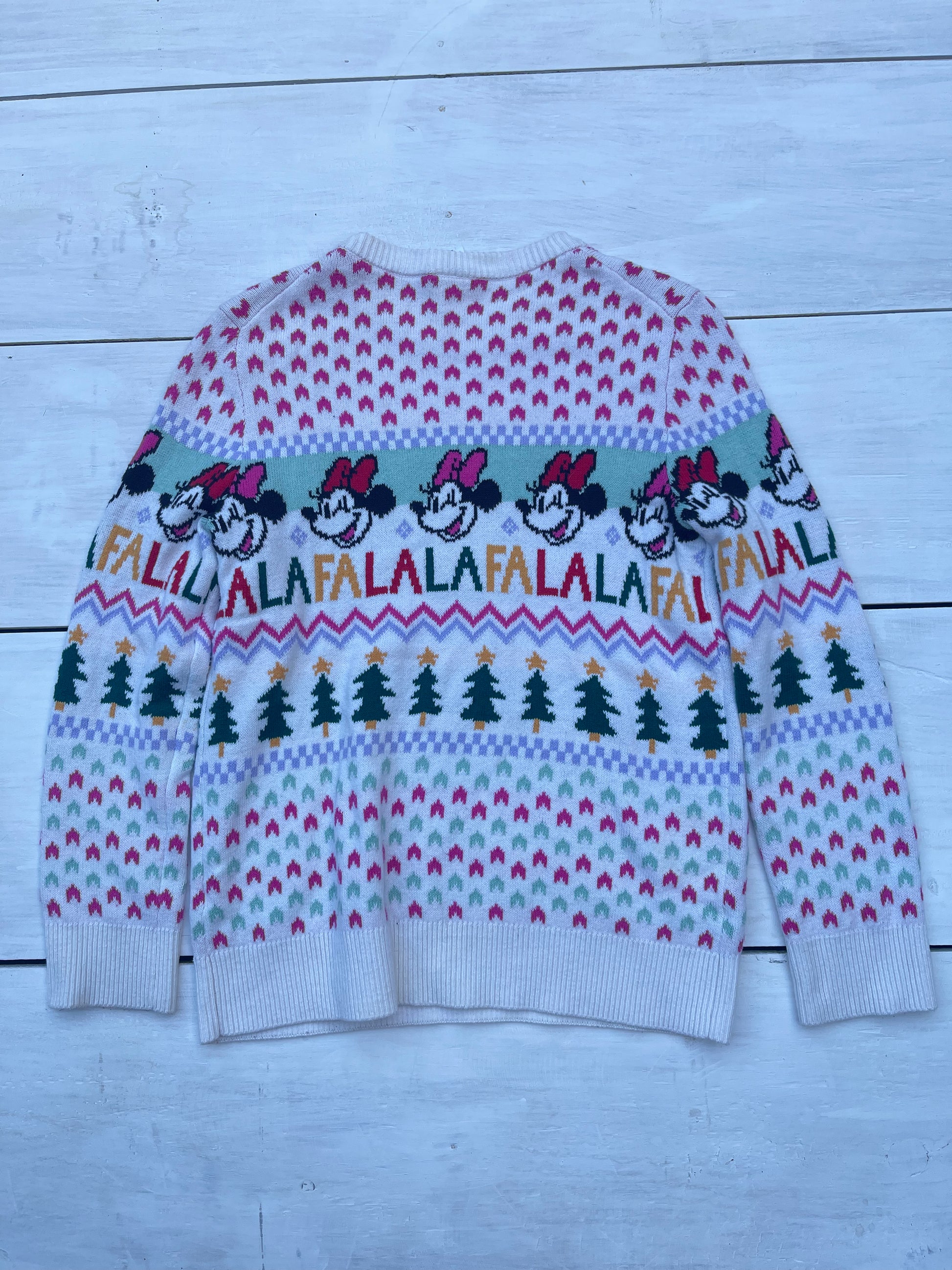 Beige, tejido con diseño navideño de Minnie Mouse. Muy elegante y calientito. De segunda mano en excelente estado.