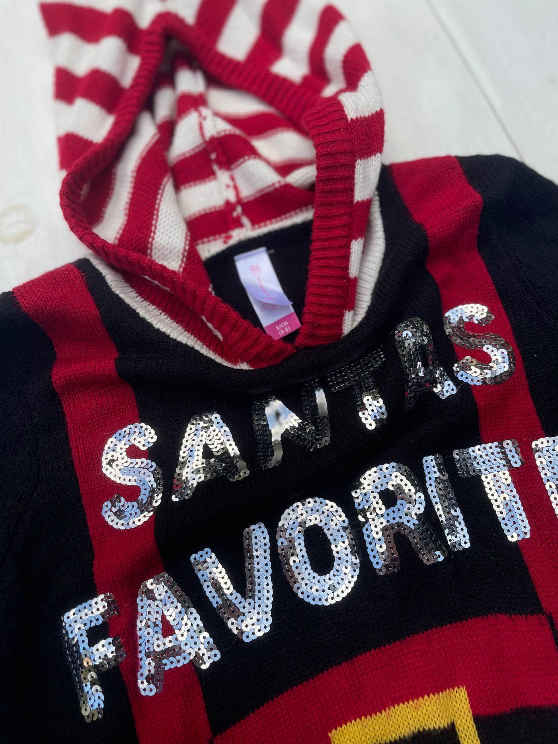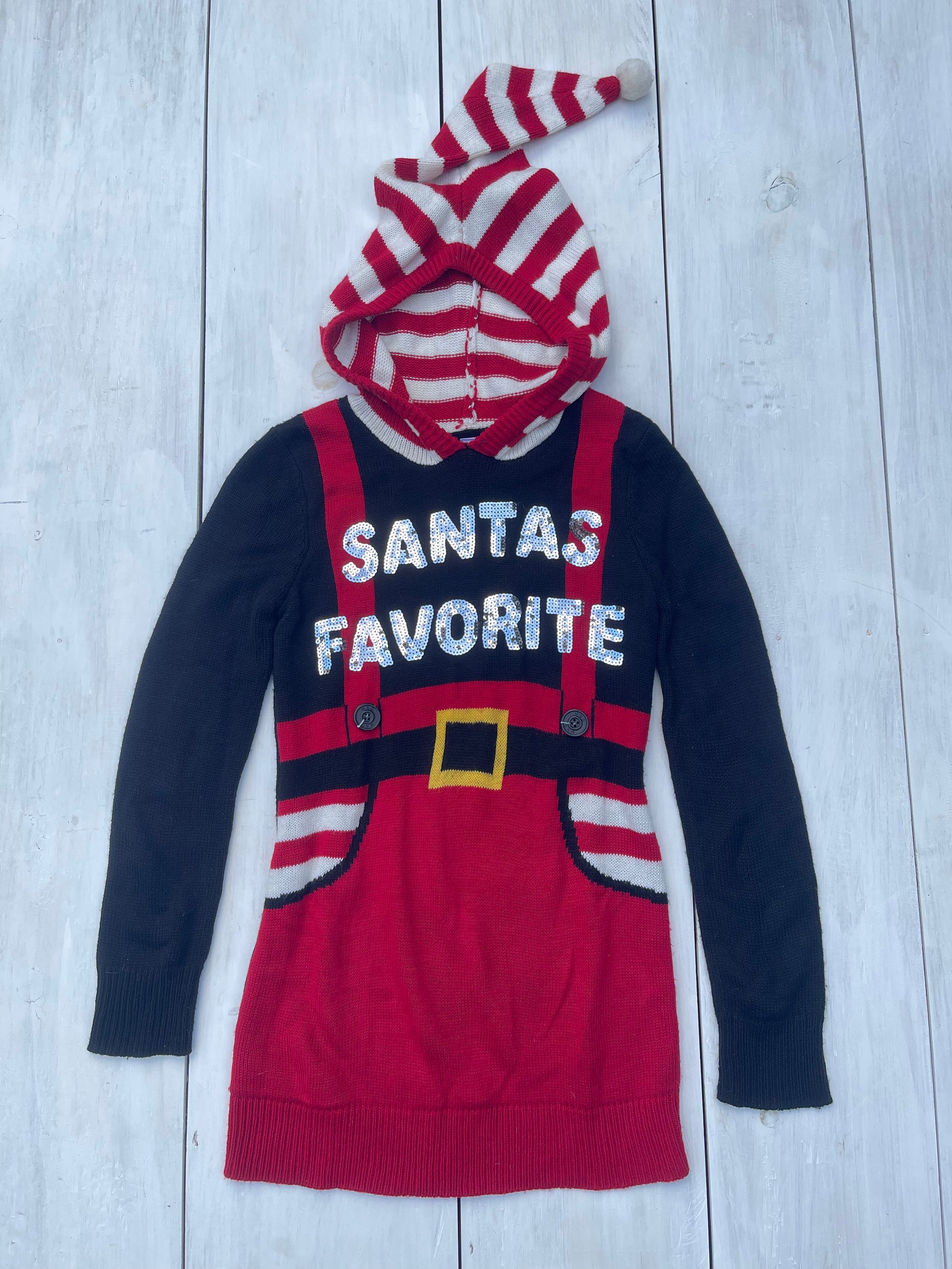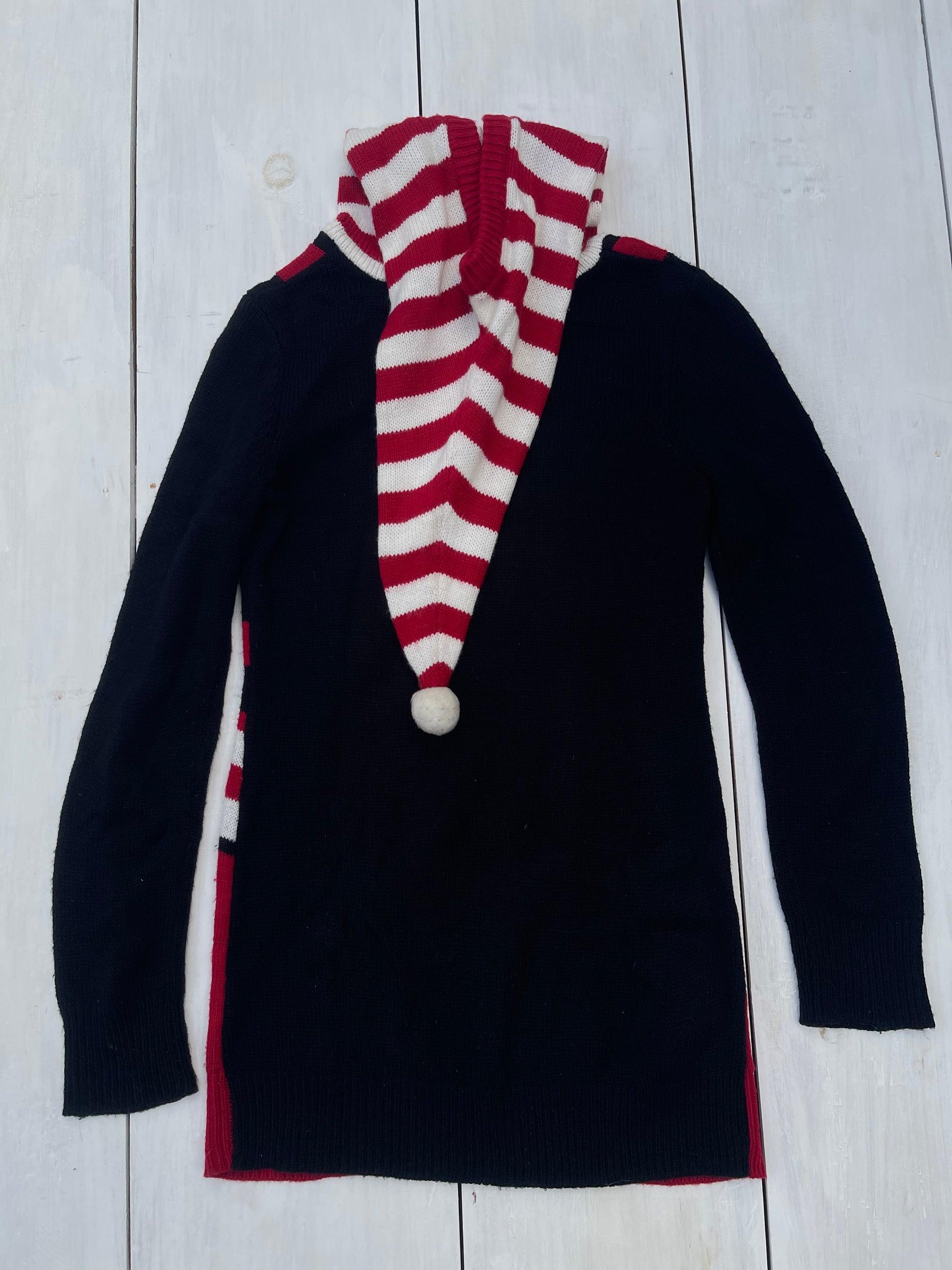 Negro y rojo, tejido. Muy divertido y lindo, con lentejuelas, botones y gorrito. Nuevo sin etiqueta. La etiqueta dice S pero queda mejor en XS.