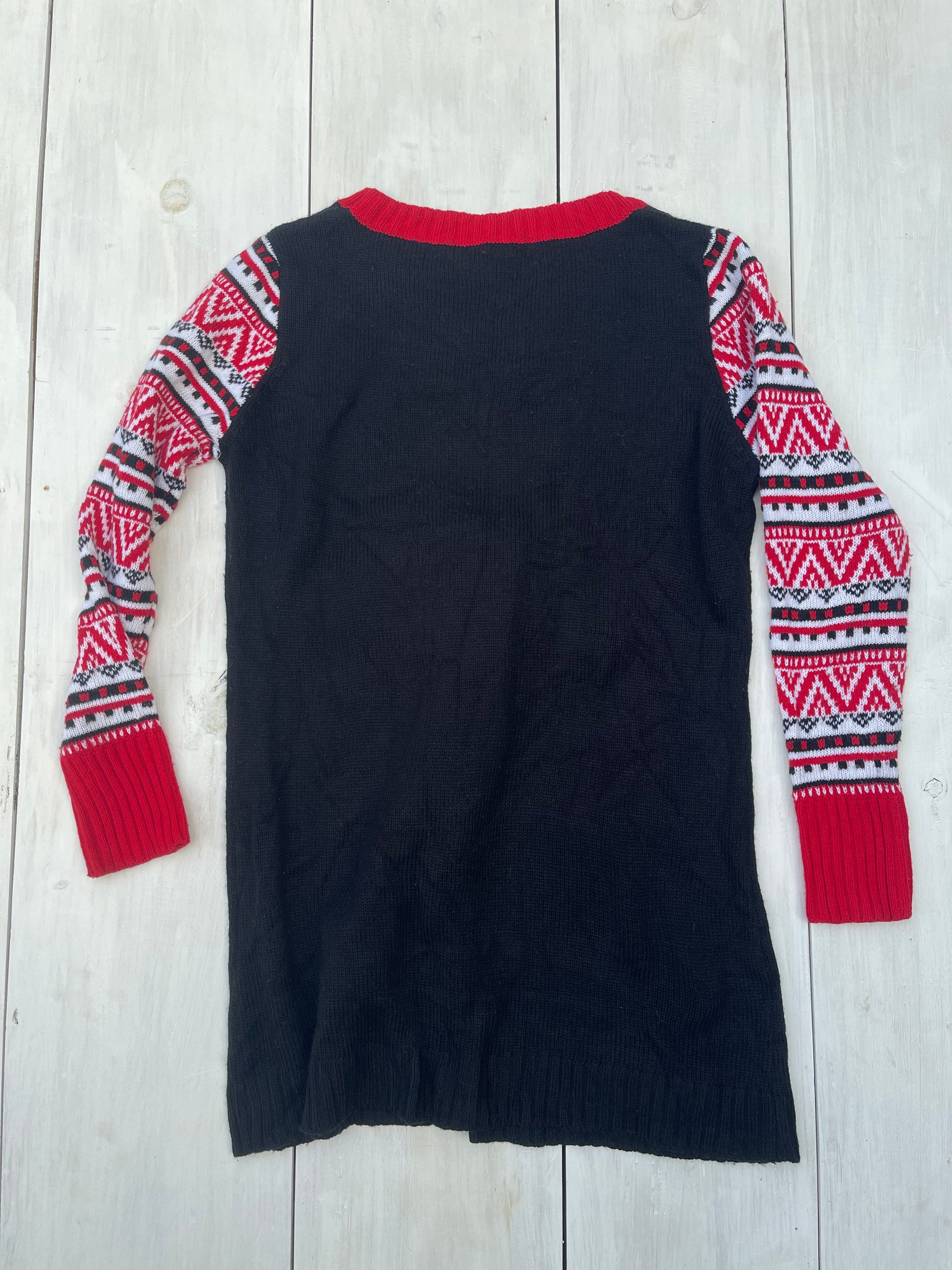 Negro, mangas de colores, diseño con piernas colgantes que se mueven. Largo, calientito y divertido. De segunda mano en buen estado.