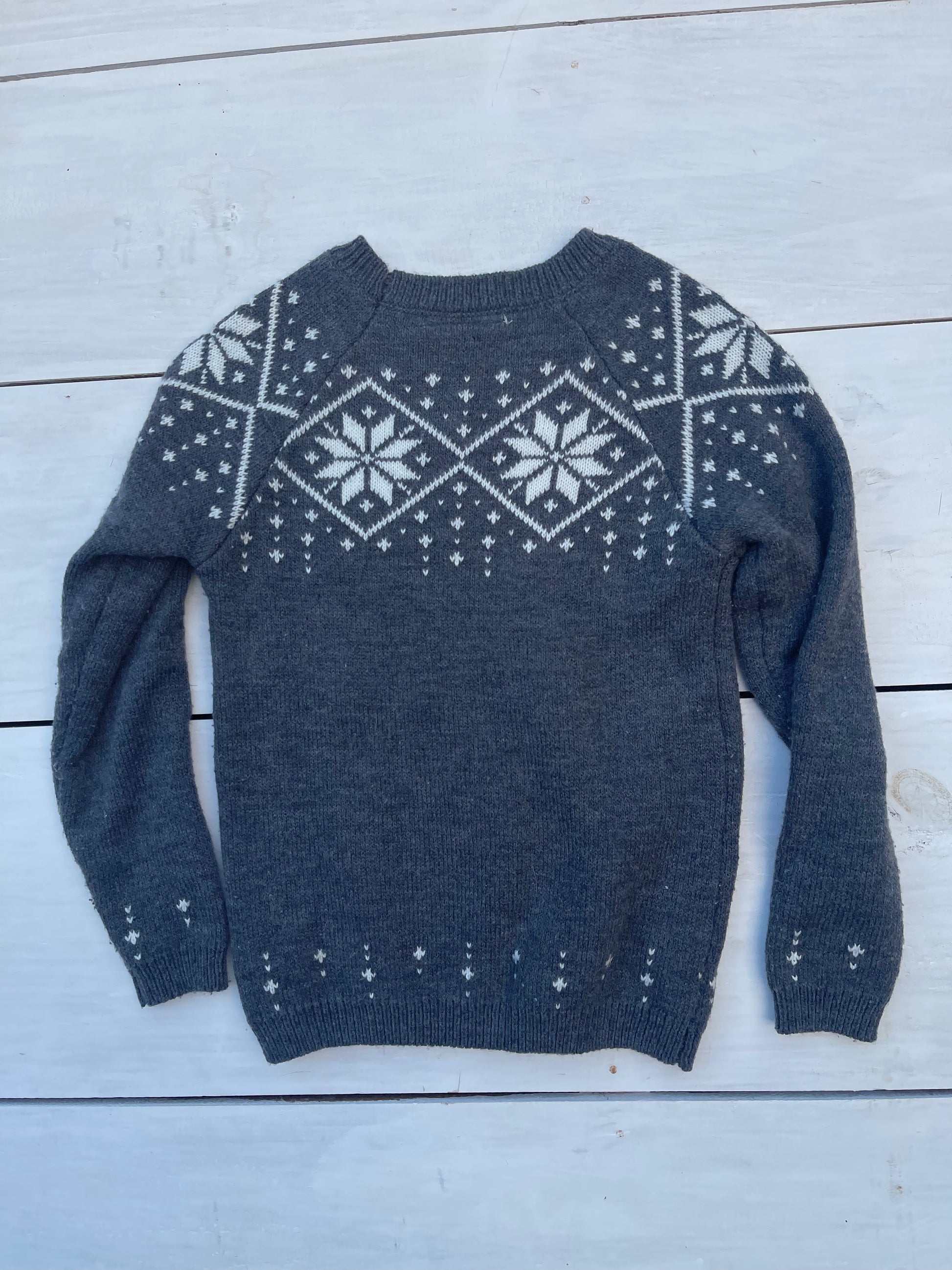 Gris tejido con Grinch al frente y adornos navideños con lentejuelas. Unisex. De segunda mano en excelente estado.
