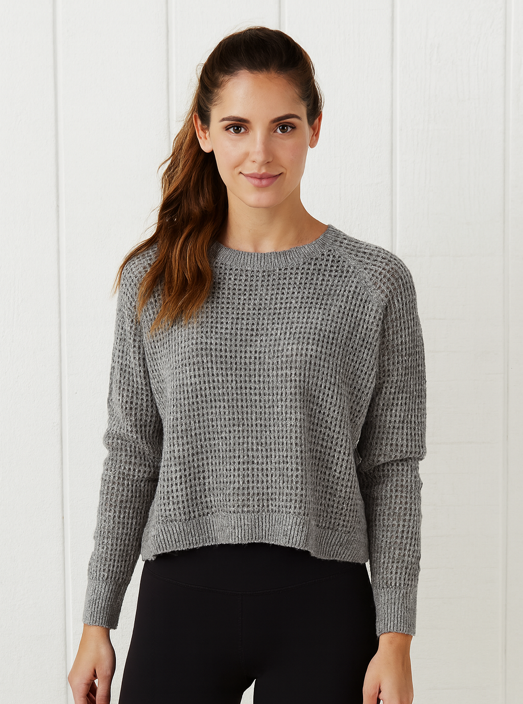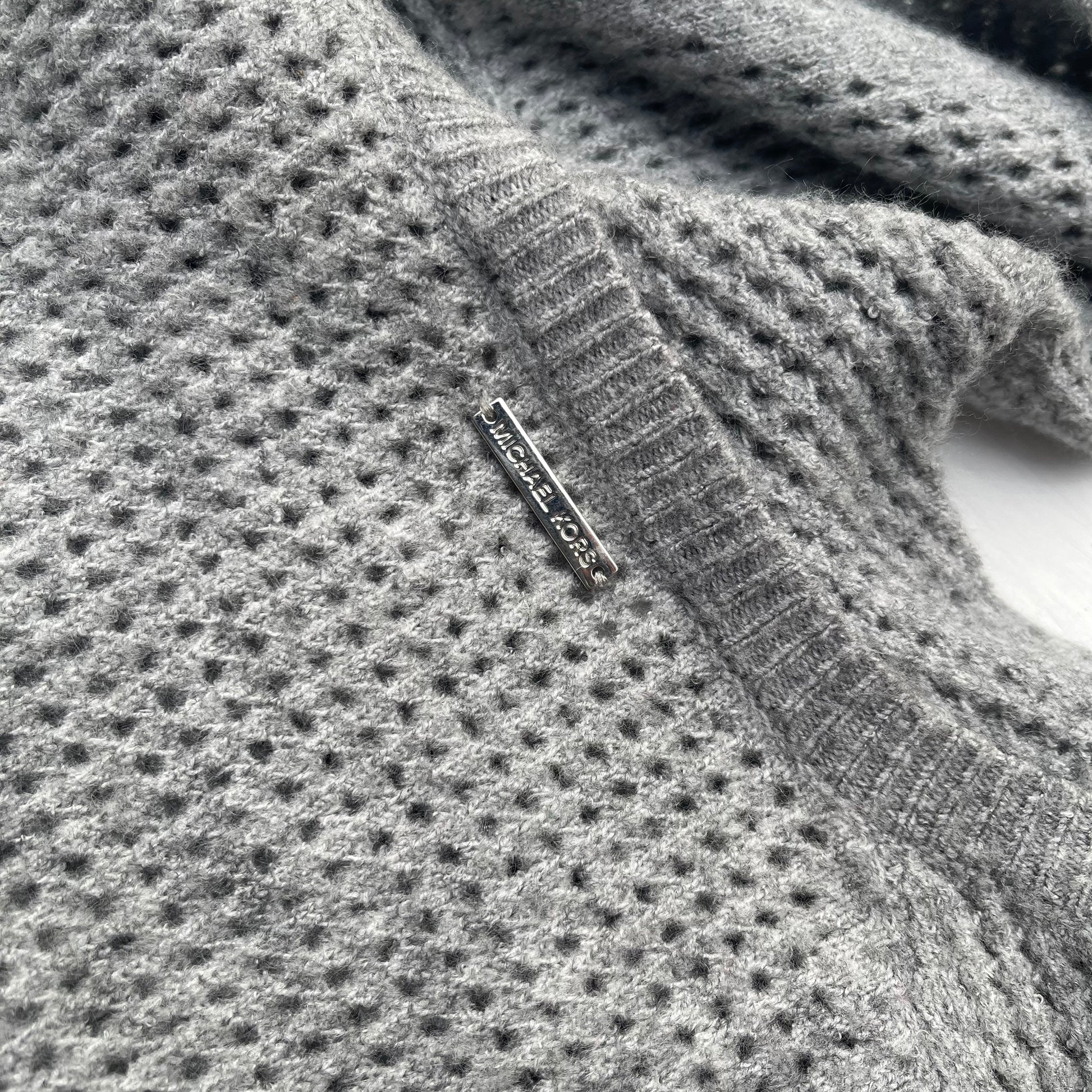 Gris, tejido caladito, elegante. Tela suave y calientita. Logo en espalda. Nuevo