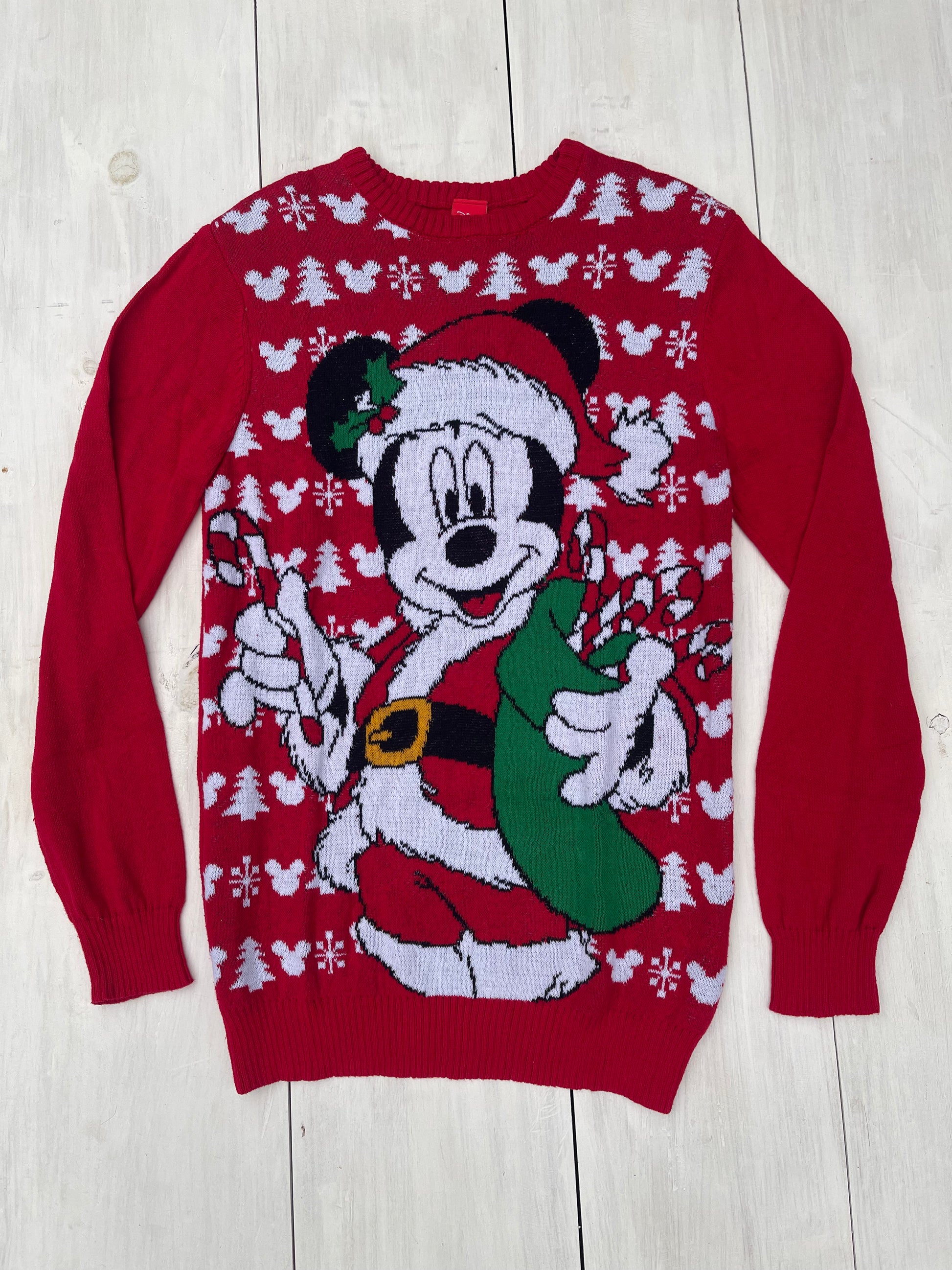 Rojo tejido con diseño navideño de Mickey. De segunda mano en excelente estado. Stretch, calientito y elegante. Dice XL en la etiqueta, pero queda bien en talla M.