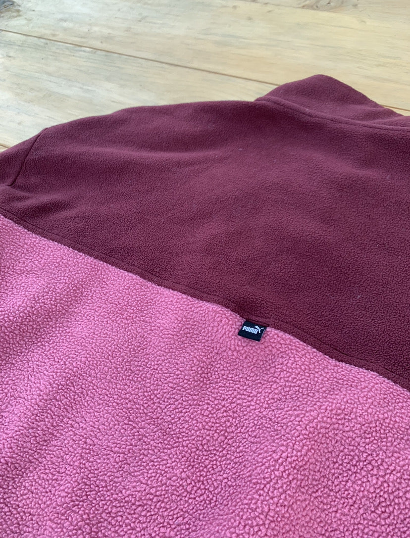 Rosado y violeta. Diseño flojo. Tela suave y calientita. Con botones.
