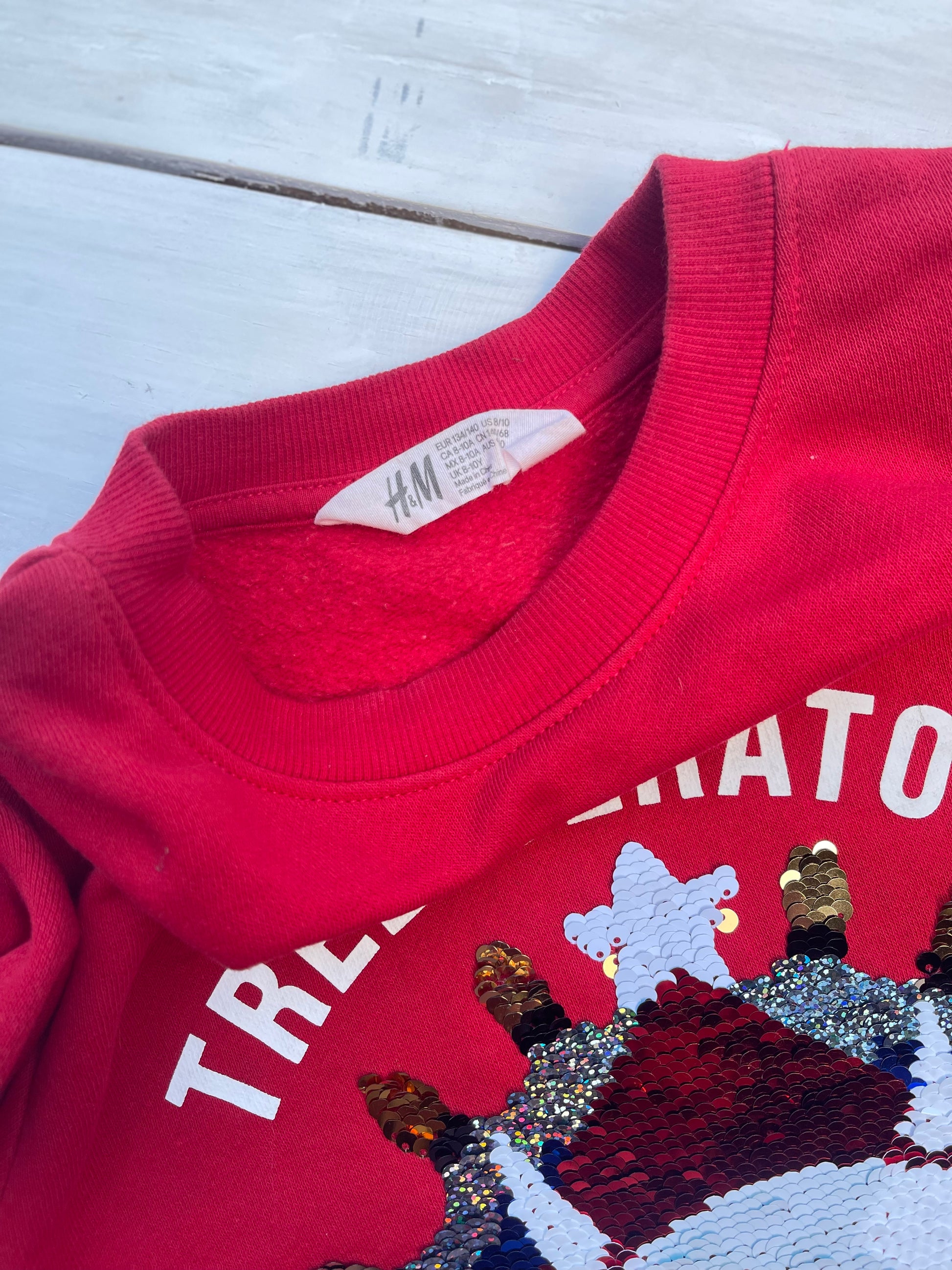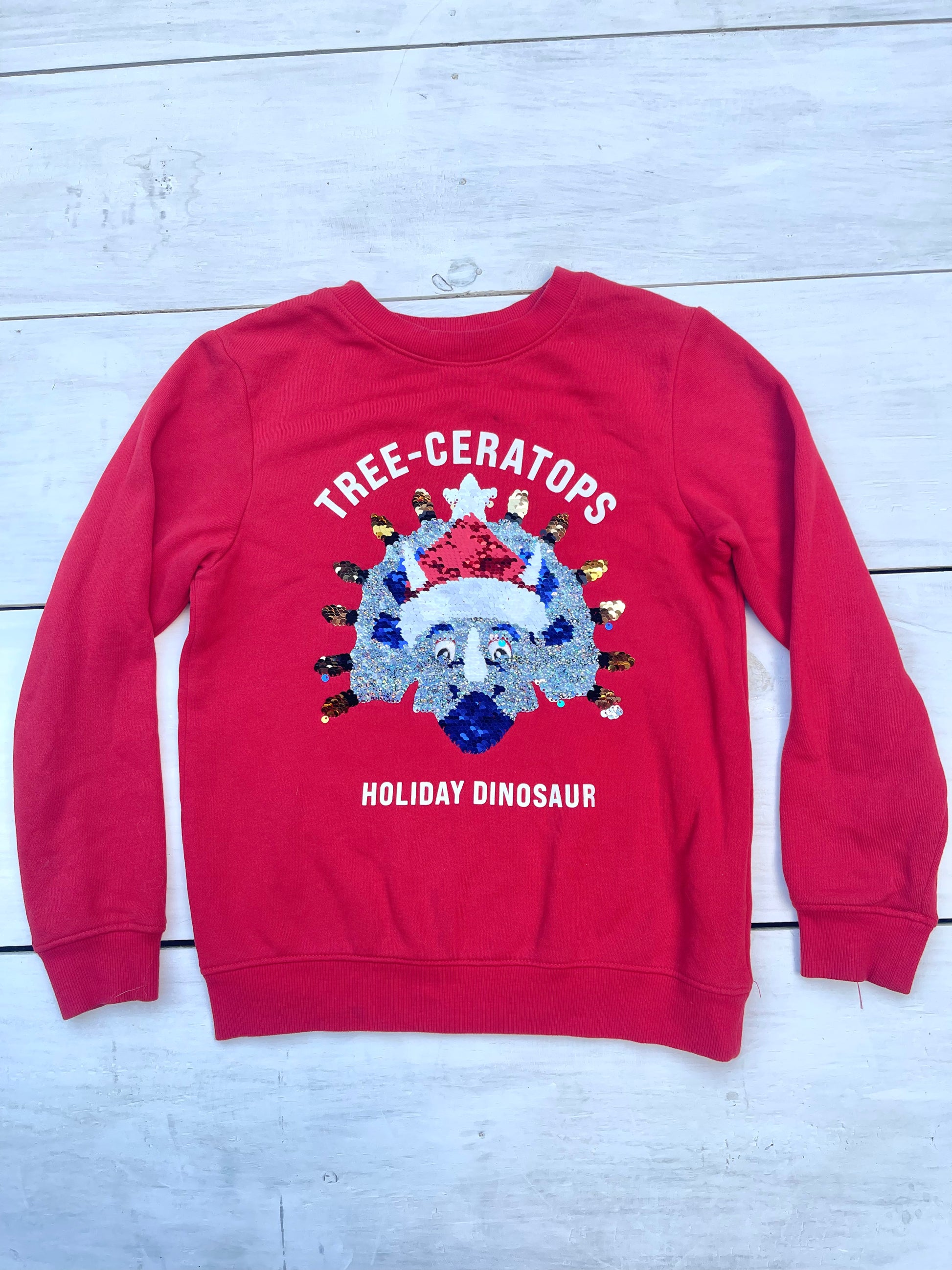 Rojo, tela suave y calientita, muy elegante, con diseño de dinosaurio navideño que cambia al mover las lentejuelas. Nuevo sin etiqueta.