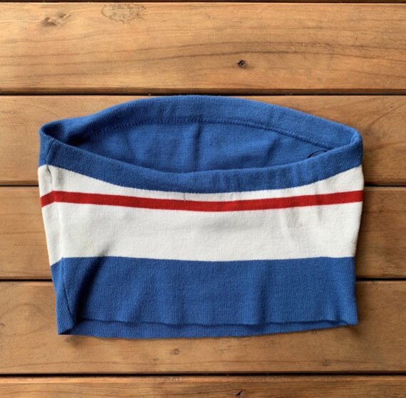 Tela cómoda, color azul, rojo y blanco, stretch. Medidas: Ancho 32, Largo 26.