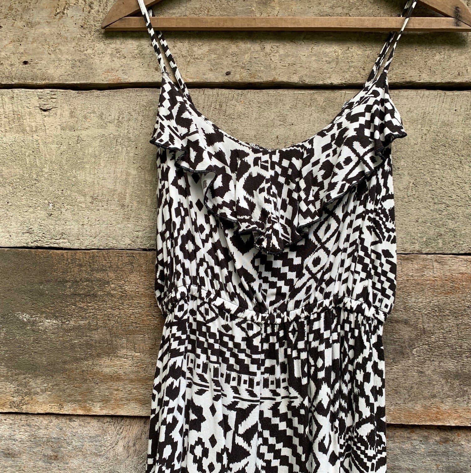 Tela suave y fresca, corto con estampado, color blanco con negro.