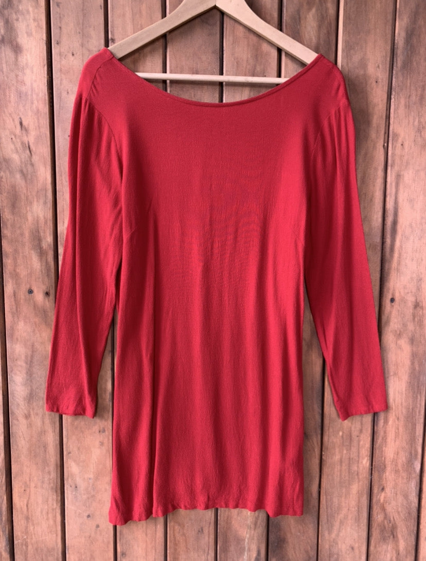 Tela cómoda y elegante. Color rojo con escote en espalda.